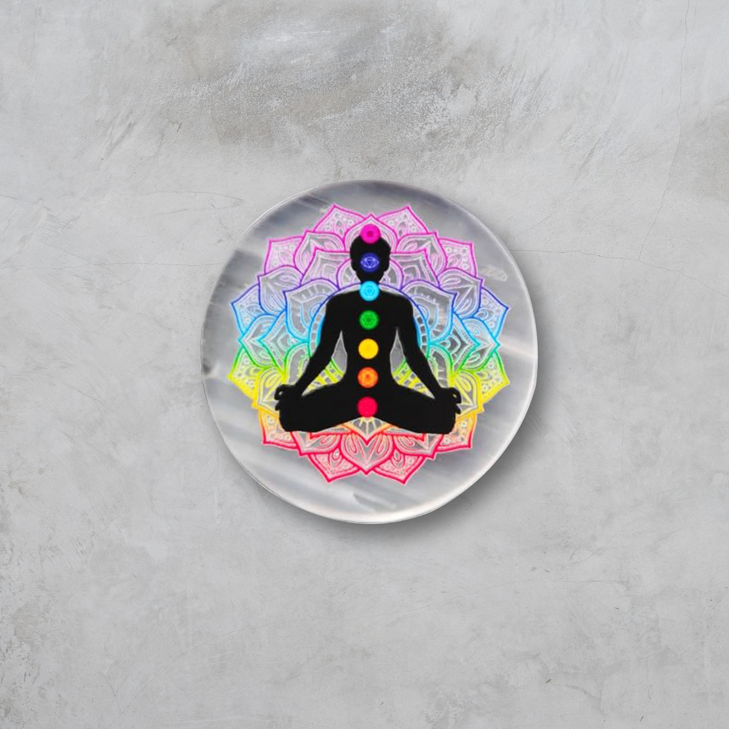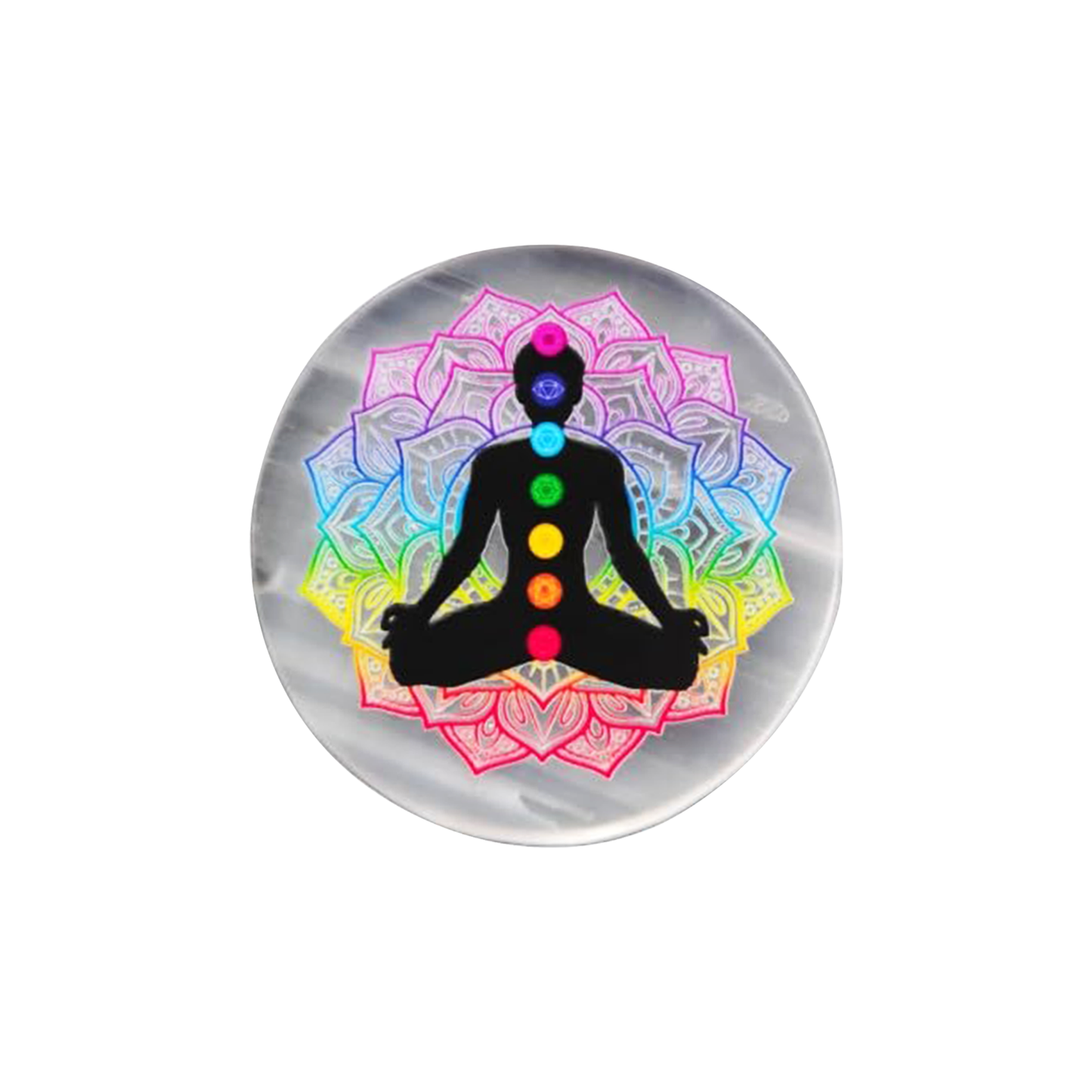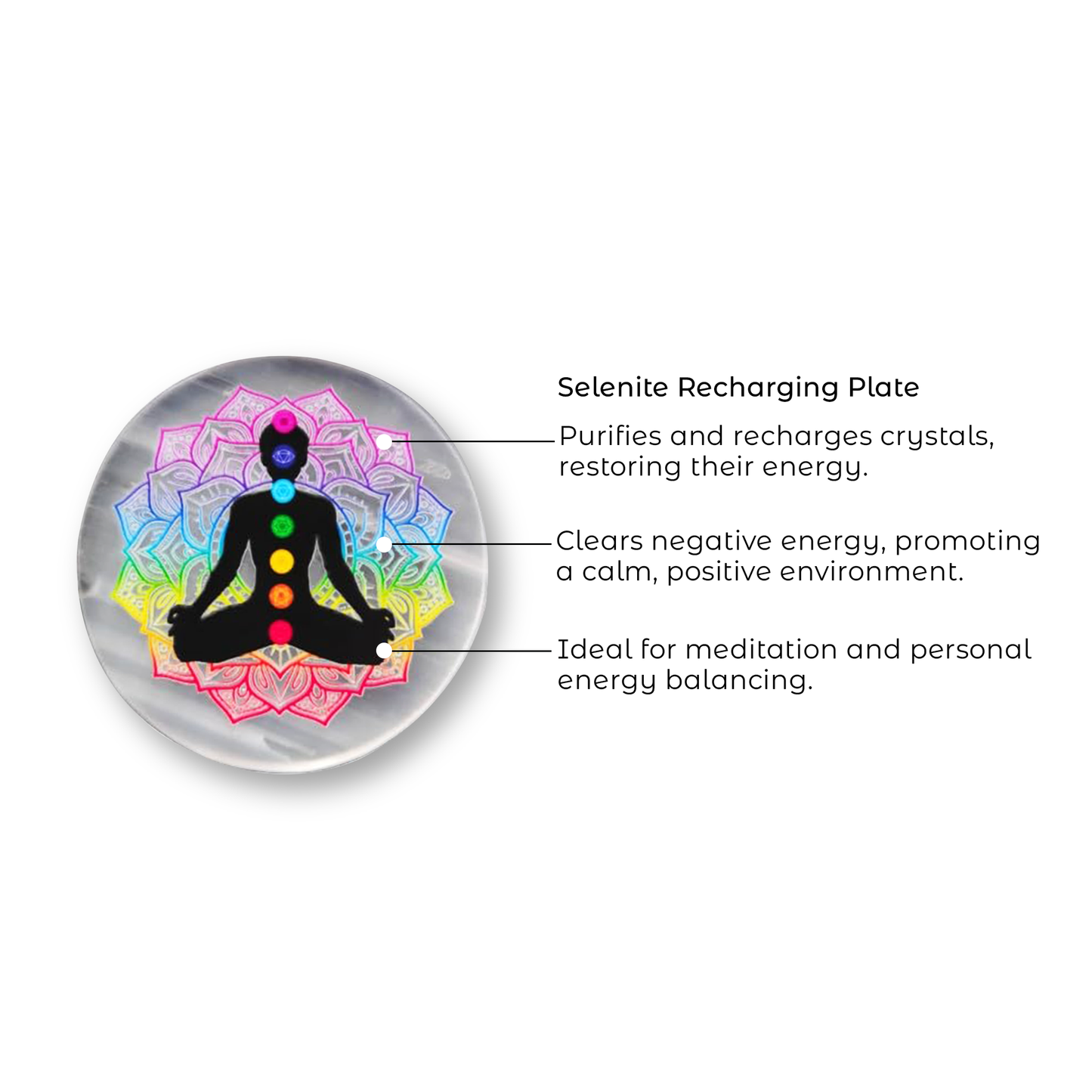 The 7 Chakra Selenite Recharging Plate is a powerful tool for cleansing and recharging your crystals, jewelry, and personal energy. Selenite is known for its purifying properties, helping to clear negative energy and align the chakras. This plate is embedded with the 7 chakra symbols, making it ideal for energy balancing and enhancing the spiritual potency of your items.