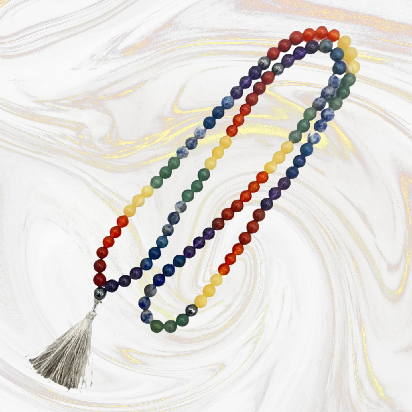 The 7 Chakra Japa Mala is crafted to align and balance your energy centers, enhancing spiritual growth and emotional well-being. Each bead represents one of the 7 chakras, promoting harmony, peace, and mindfulness during meditation or daily affirmations. This mala is ideal for those seeking balance, positivity, and inner connection.
