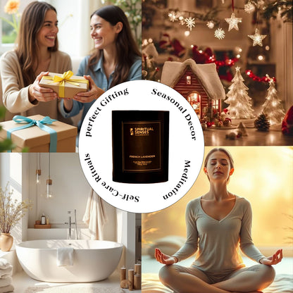 The Spiritual Senses Scented Jar Candle features a soothing French lavender fragrance. It is eco-friendly and offers a long-lasting scent. This candle is great for relaxing at home, enhancing your décor, and makes a thoughtful gift for women. Use it during downtime, meditation, or to create a peaceful atmosphere.