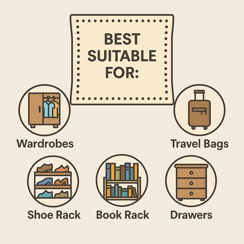 ● Keeps Wardrobes, drawers, bags, clothes, and dresses smelling fresh.
