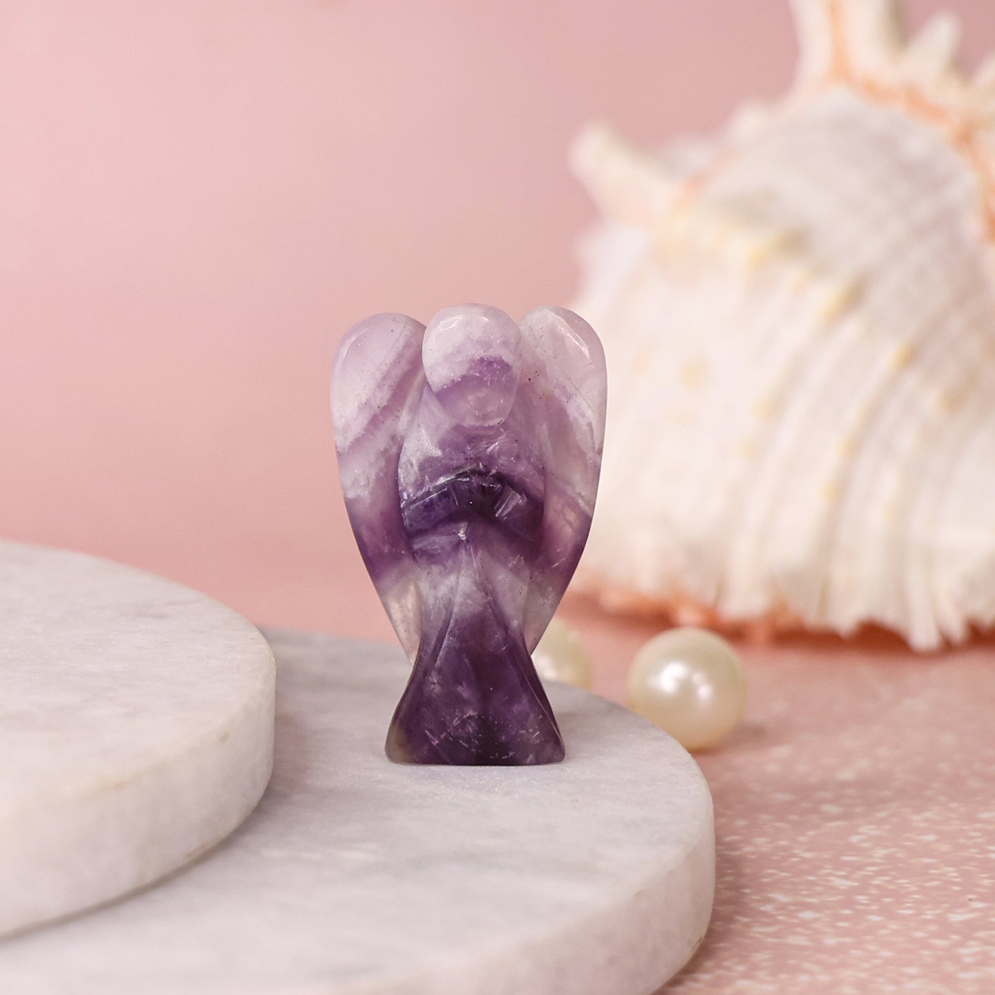 Представляем аметистового ангела Spiritual Sense, небесное воплощение спокойствия и духовности. Каждая фигурка ангела изготовлена из настоящего кристалла аметиста, который ценится за свои успокаивающие свойства и защитную ауру. Аметистовый ангел — прекрасный подарок, который отлично смотрится на алтарях или в местах для медитации. Это символ высшего сознания, интуиции и спокойствия. Позвольте его мягкому присутствию побудить вас принять преобразующий потенциал духовного просветления и установить связь со своей внутренней мудростью. Используйте Amethyst Angel от Spiritual Sense, чтобы улучшить свою духовную практику и приветствовать ангельскую помощь в своей жизни.