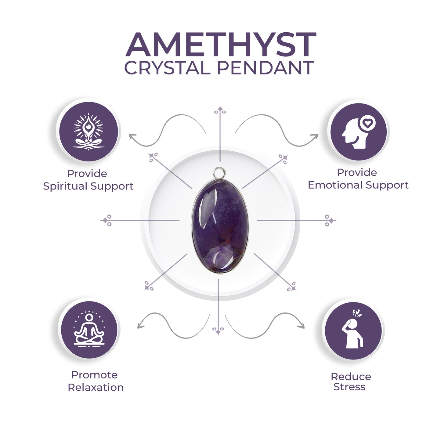 Embrace the calming and spiritual energy of the Amethyst Pendant, a timeless accessory crafted from high-quality amethyst stone, known for its protective and healing properties. This stunning pendant enhances any outfit with its natural beauty while helping to bring peace, clarity, and balance to your everyday life. Perfect for those seeking tranquility and positive energy, this pendant makes a meaningful addition to any jewelry collection.
