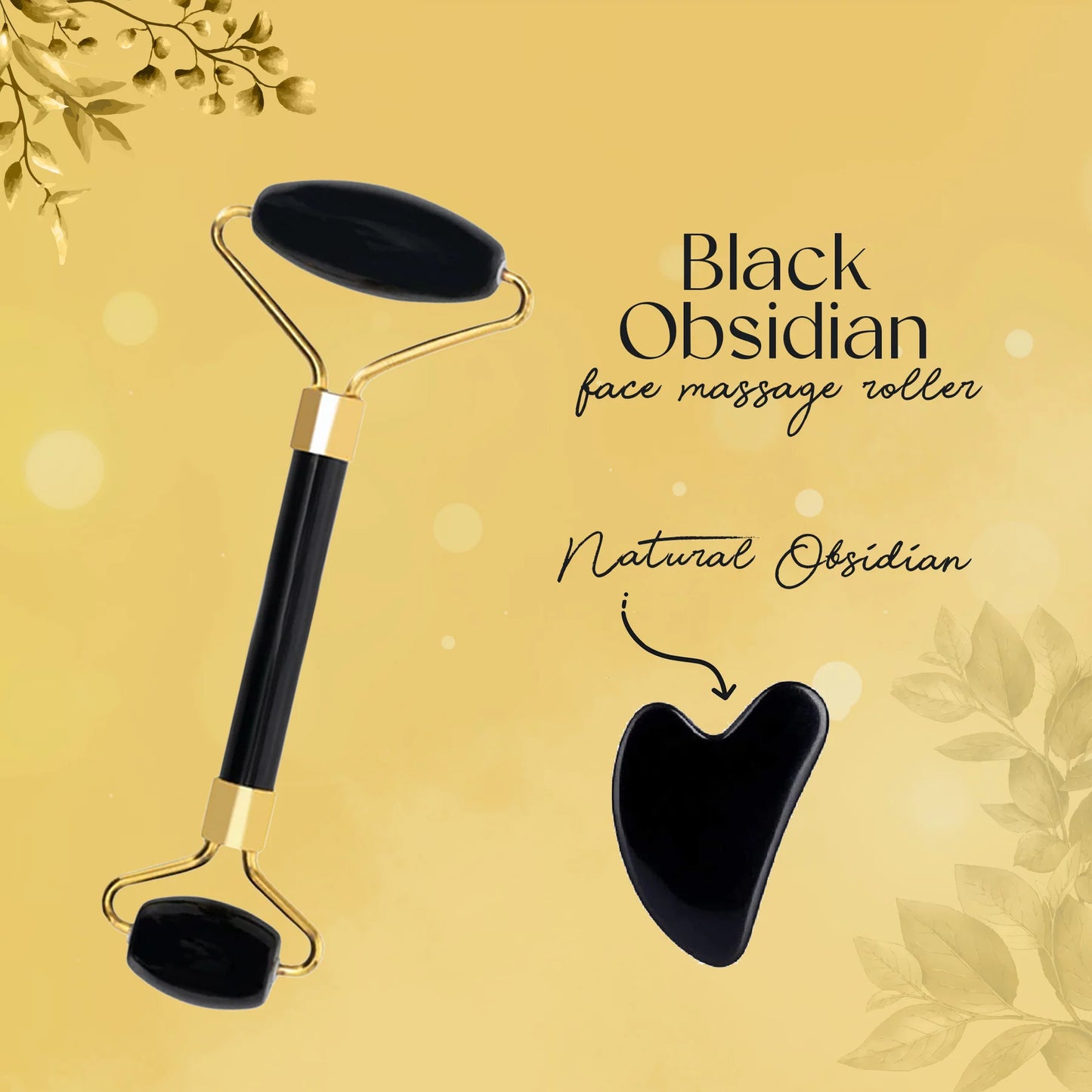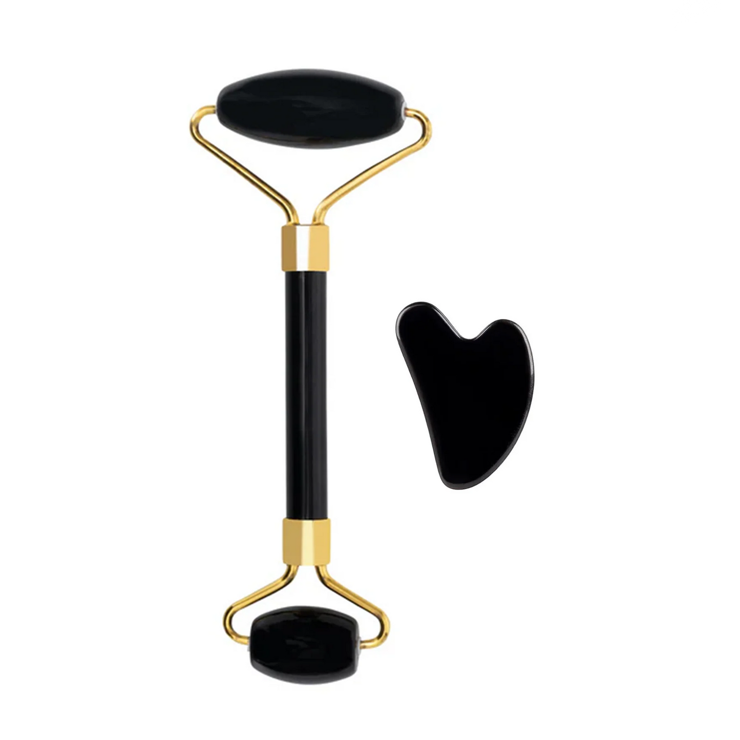 Black Obsidian Face Massage Roller with Gua Sha Set