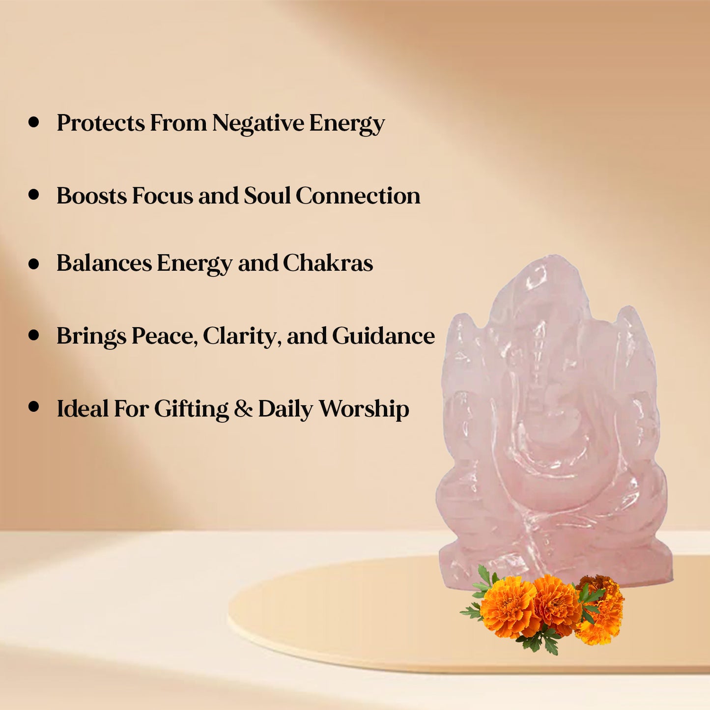 Великолепное сочетание небесной любви и духовной мудрости — встречайте нашего Розового Кварца Ганеша. Эта потрясающая статуя из драгоценного камня розового кварца с тщательной резьбой представляет собой индуистское божество Ганешу, известное как устранитель барьеров и олицетворение сострадания. Считается, что розовый кварц расширяет сердце, успокаивает эмоции и способствует безусловной любви. Каждое произведение излучает эту мягкую, сострадательную энергию. Наш розовый кварц Ганеша символизирует благодать, внутреннее спокойствие и небесную защиту и идеально подходит для алтарей, мест для медитации или в качестве продуманного подарка. С помощью этого великолепного произведения искусства вы сможете ощутить целебные свойства розового кварца и пригласить благословение Ганеши в свою жизнь.
